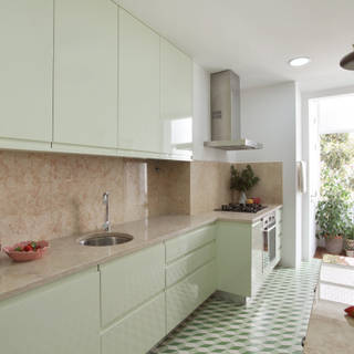 En primer lugar, busca utilizar compartimientos desplegables que se hallen, por ejemplo, dentro de tu mesón o en sectores donde no ocupen mucho espacio. Después, asegúrate de contar con muchas entradas de luz natural y recuerda que entre más luz, pues así más grande parecerá tu espacio. Además, ten varios puntos de ventilación, pues al tratarse de estancias pequeñas se podrá acumular más el humo y los vapores. Por último, utiliza paredes blancas y tonos claros.